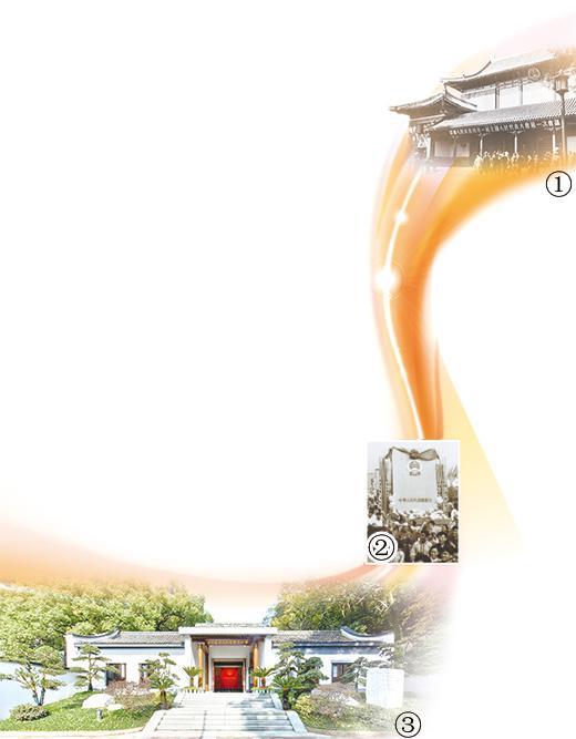 图①:参加一届全国人大一次会议的代表步入会场。资料图片图②:1954年国庆节,游行群众抬着《中华人民共和国宪法》模型通过天安门。资料图片图③:位于浙江杭州的五四宪法历史资料陈列馆栖霞岭馆区外景。五四宪法历史资料陈列馆供图